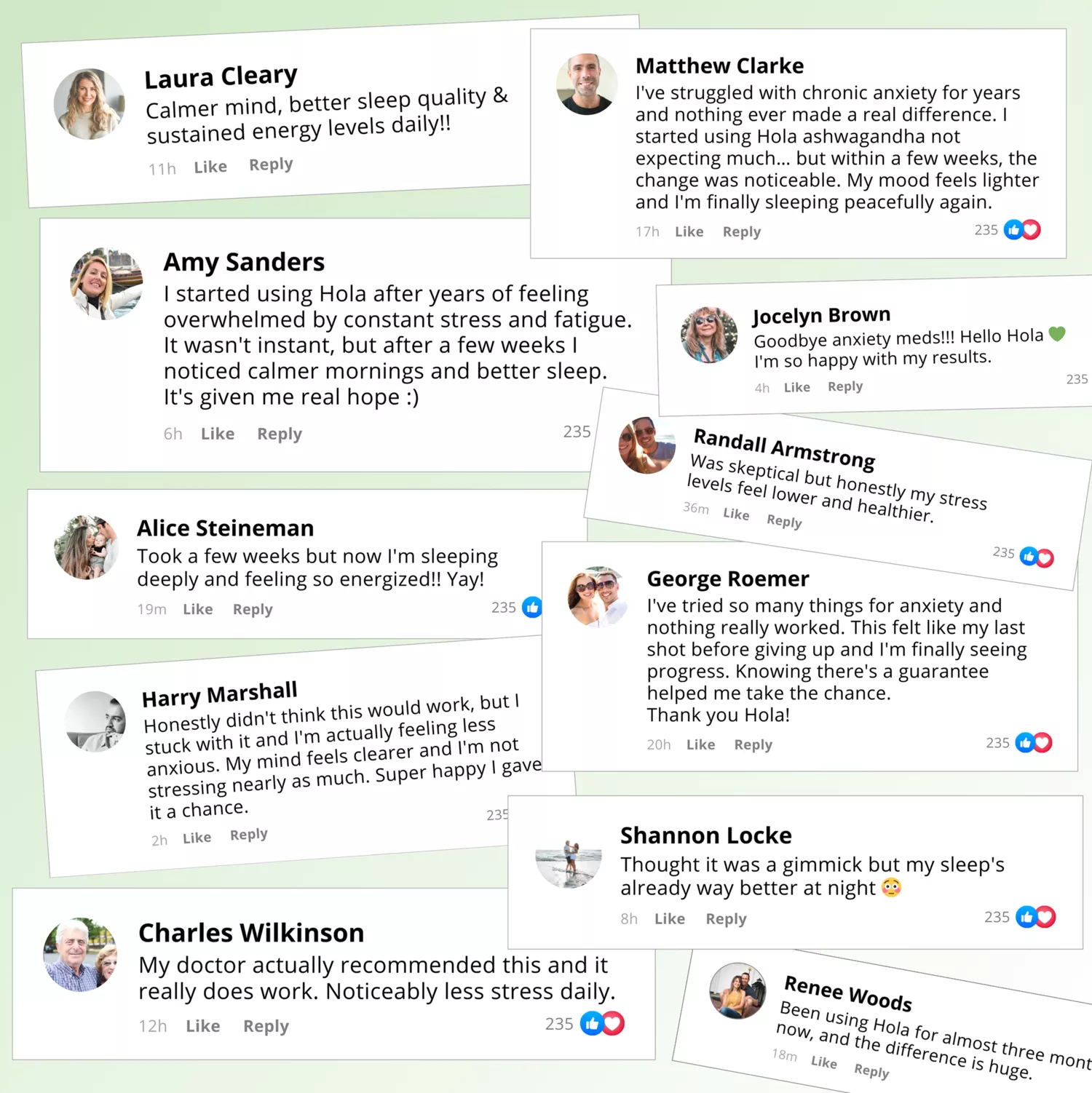 Two months after starting Hola I was already sleeping through nights, my doctor looked genuinely surprised. I credit the capsules for cutting my anxiety time in half. Nothing else changed in my routine.