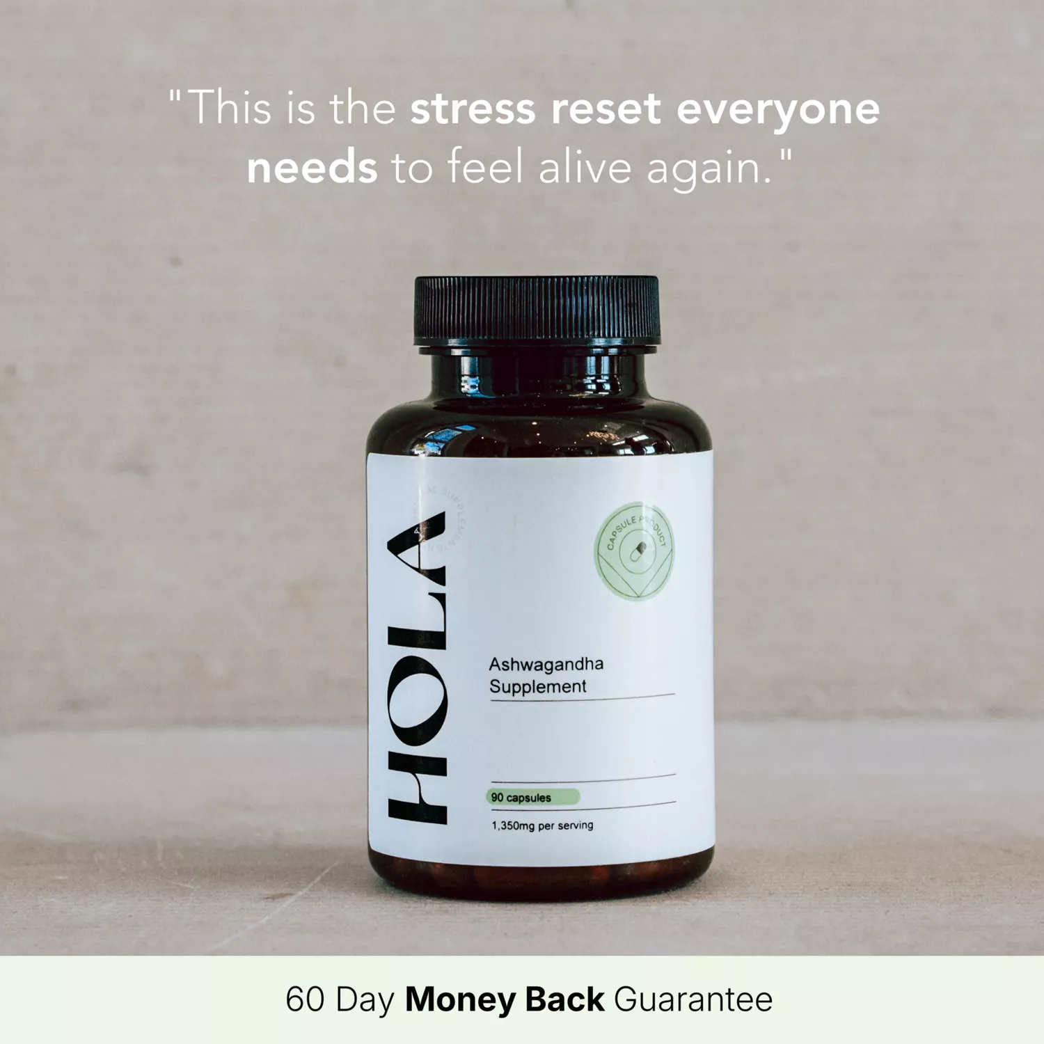 Hola uses premium organic KSM-66®, the most potent and clinically studied form available. We maintain a completely clean formula with zero fillers, binders, or artificial ingredients. Plus, our 60-day money-back guarantee (double the industry standard) and rigorous third-party testing ensure you're getting exceptional quality and value.